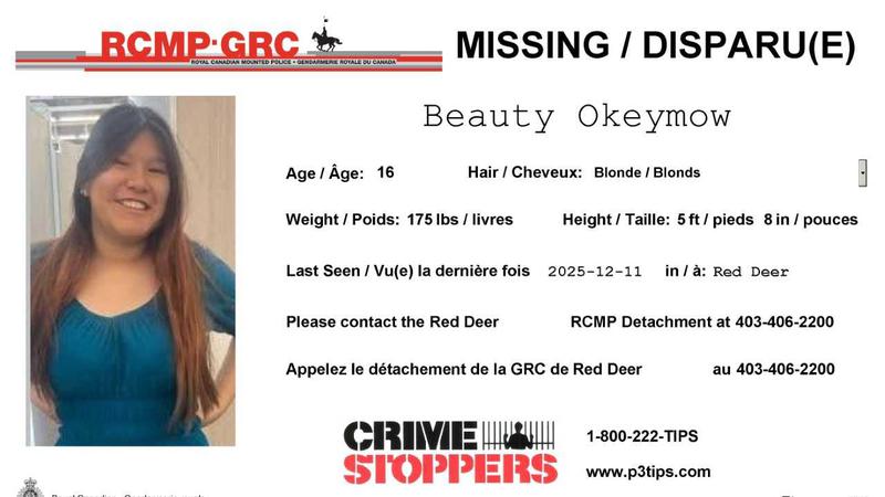 Red Deer RCMP are seeking public assistance in locating missing 16-year-old Beauty Okeymow. Beauty was last seen in Red Deer on Dec. 11, and there is concern for her well-being.Beauty Okeymow is described as:5 feet 8 inches tallapproximately 175 poundsbrown eyesblonde hairlast seen wearing a green jacket, blue shirt, b...