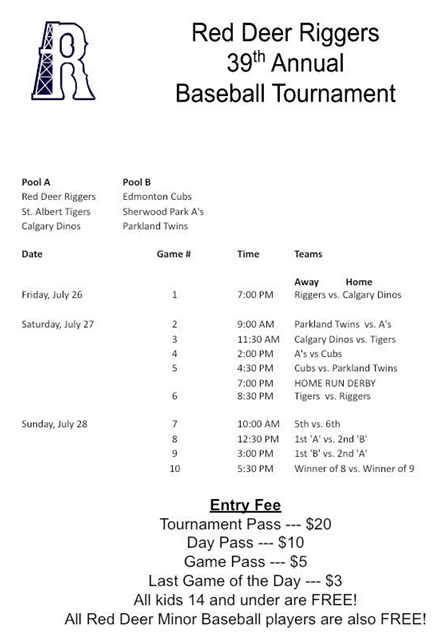 The Red Deer Riggers are adding a charitable component for their 39th annual baseball tournament this weekend at Great Chief Park.