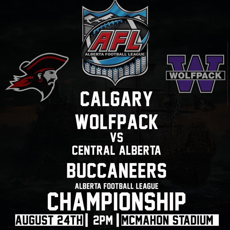 Both teams finished with 5-3 regular season records and split their head-to-head series with the Buccaneers winning 31-21 on May 25 in Calgary and the Wolfpack winning 49-35 in Red Deer on July 13.