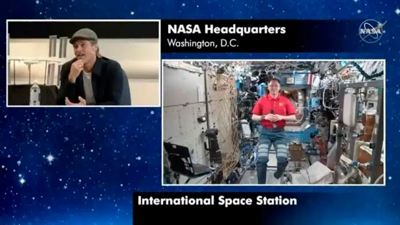 In a televised call Monday, NASA astronaut Nick Hague answered Pitt — “absolutely” — getting a big laugh. Pitt’s Hollywood pal George Clooney starred in the 2013 space film “Gravity.”