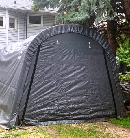 One of two soft-sided structures an Innisfail woman and her mother have been ordered to remove from their property. Town officials say the structures are not permitted in their Land Use Bylaw and others who have them will soon face the same enforcement. (Photo: Lisa Voelker)