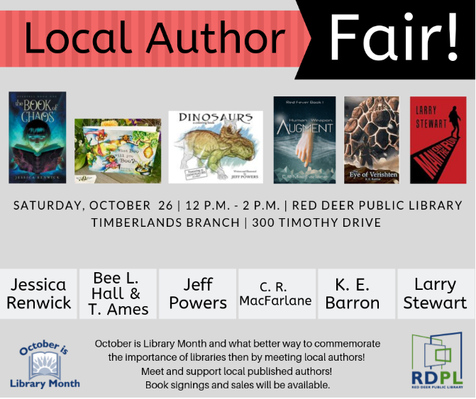 Red Deer Public Library is inviting the public to meet featured authors and learn about their books from 12 p.m. to 2 p.m. this Saturday, October 25, at the Timberlands Branch (300 Timothy Drive).