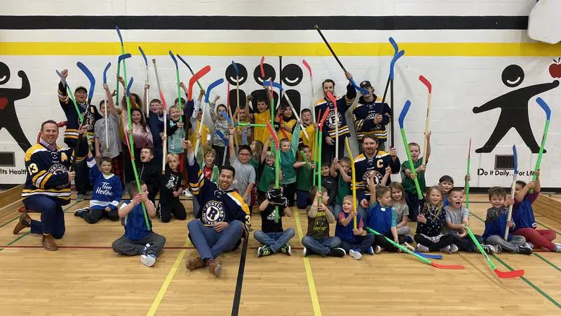 “The students were star struck by the players that came to play floor hockey with them today. The players came to share their love of the game with the students and that showed in every moment they spent with the kids,” said Sian Milner, a Grade 4/5 and music teacher at Aspen Heights. “They played with them, had fun with them and visited with them over lunch. They gave them tips on the game, answered their questions, signed autographs, shared their hockey stories and listened while the students shared their own stories. The excitement and joy could be felt throughout the gym and lunchroom. It is hard to express how much experiences like this mean to our kids, but I hope that the players realize what a great gift they gave to the students today.”