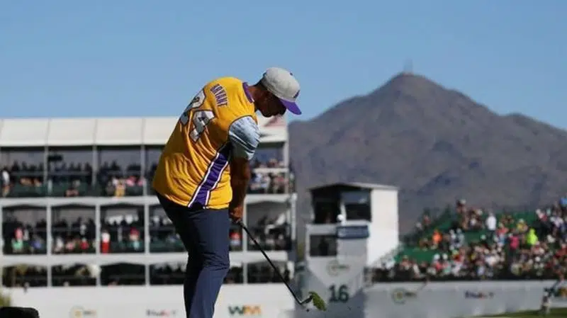 SCOTTSDALE, Ariz. — The PGA Tour joined players with a 16th-hole tribute to Kobe Bryant on Sunday at the Waste Management Phoenix Open, using his two Lakers uniform numbers to cut the final-round pin position on the stadium par 3.