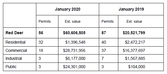 Strong start to 2020 for building permit values in Red Deer