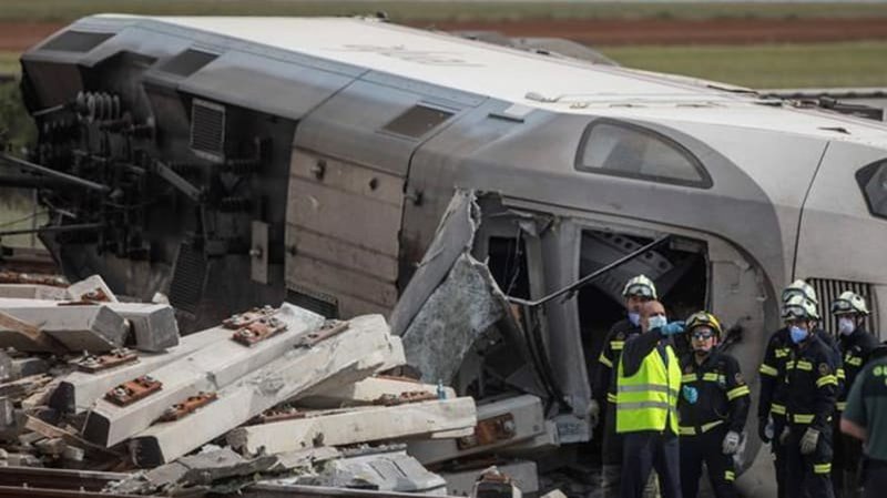 The four-wheel-drive car fell off a bridge and landed on the train line in the Castille and Leon region, local emergency services said in a statement.