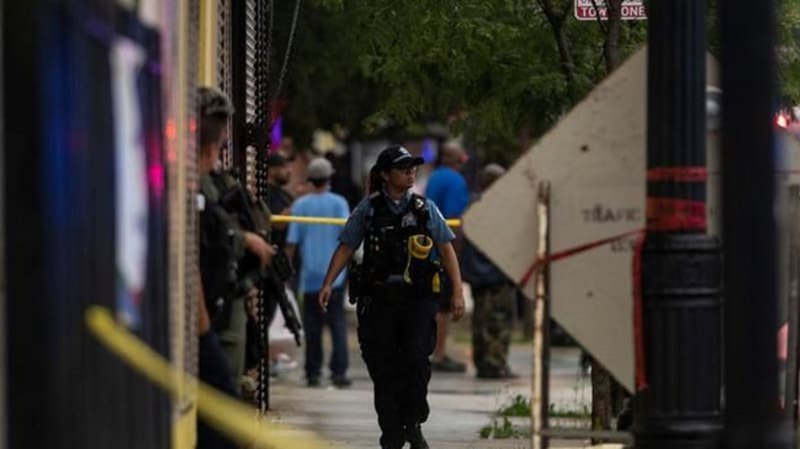 CHICAGO — Fourteen people were injured, one person was in custody and additional suspects were being sought after gunfire erupted outside a funeral home on Chicago’s South Side where at least one squad car was present, police officials said Tuesday.