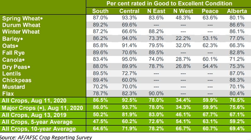 The latest Alberta Crop Report for August 11 (released August 14), notes a wide variety of weather affected crops across the province this past week.
