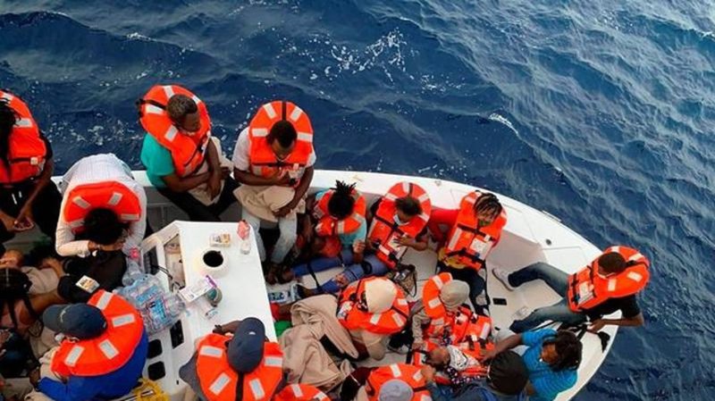 The cruise ship was in international waters 37 miles off the coast of Palm Beach when it came upon the struggling boat, whose passengers were of various nationalities, cruise line officials said. They were evaluated and quarantined from the crew.