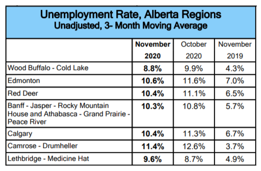 Of note, the latest labour force survey reflects labour market conditions during the week of November 8 to 14 before new public health restrictions were introduced in Alberta at the end of the month.