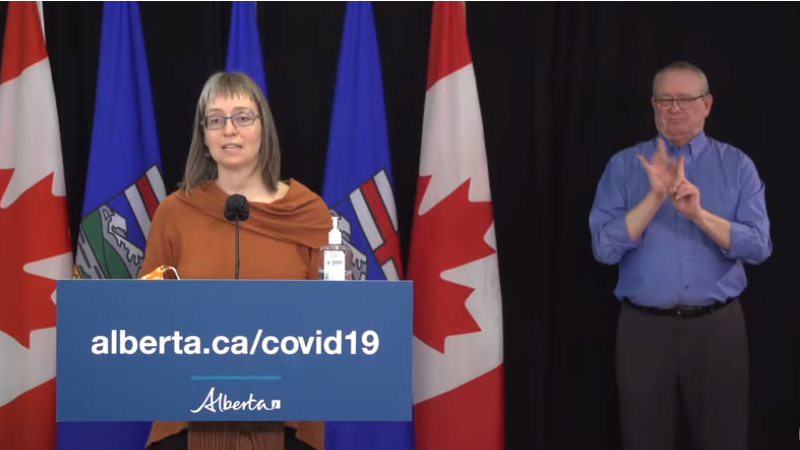 Alberta’s chief medical officer of health says they are closely watching how COVID-19 cases are trending, but there is no specific benchmark on how many variant cases need to be identified for the province’s reopening plan to be paused.