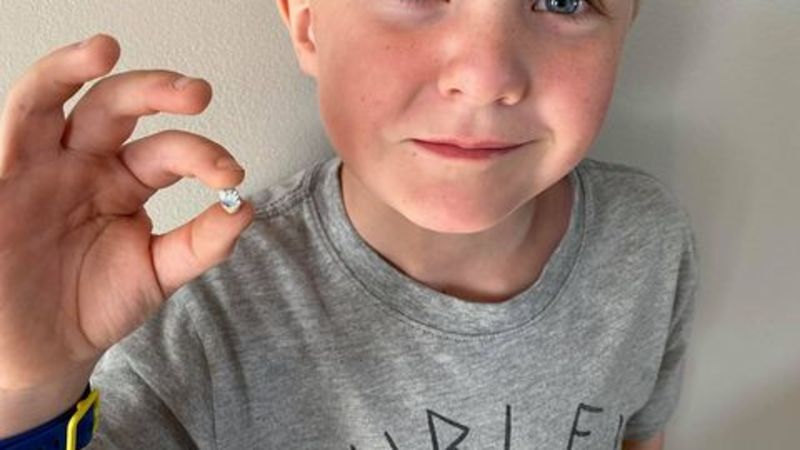 At first, Austin’s mom Bridget thought it was a fish tooth.
