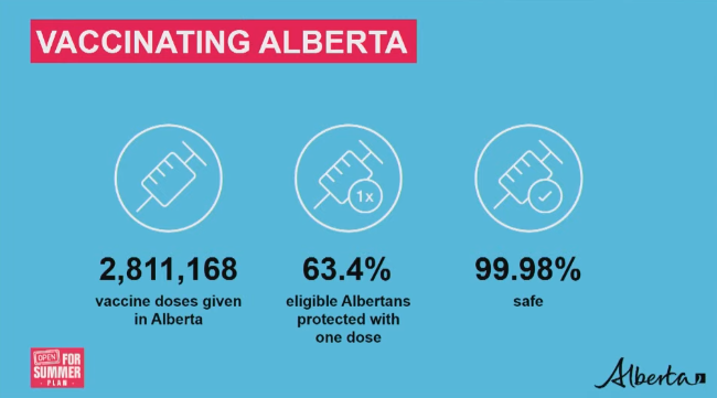 With 63.4 per cent of Albertans having already received their first doses, Premier Jason Kenney announced that second-dose appointments are being opened up.
