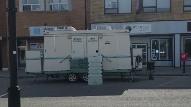A mobile washroom trailer sits out the Downtown Business Association in downtown Red Deer, part of a City pilot project. (Downtown Business Association)