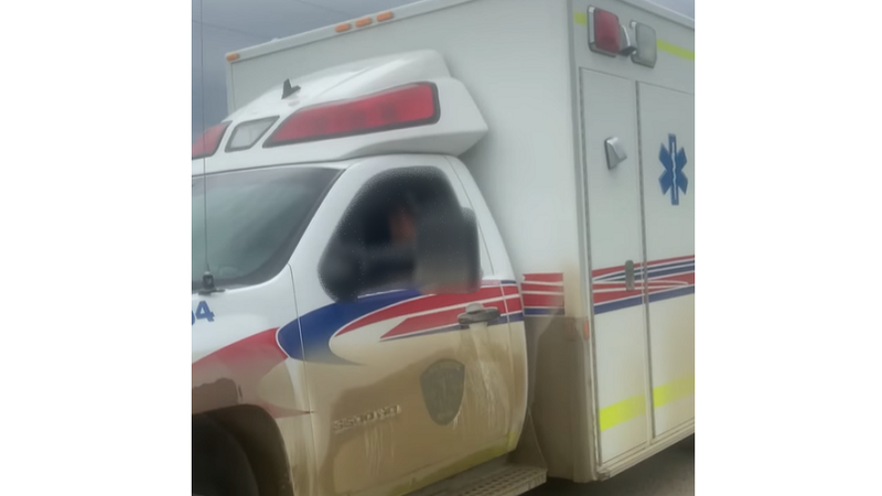 This ambulance, seen in a video on Sonny Strawberrii's Facebook page, was passing Strawberrii by on July 4. When Strawberrii said he needed help, the driver said the ambulance was out of service.