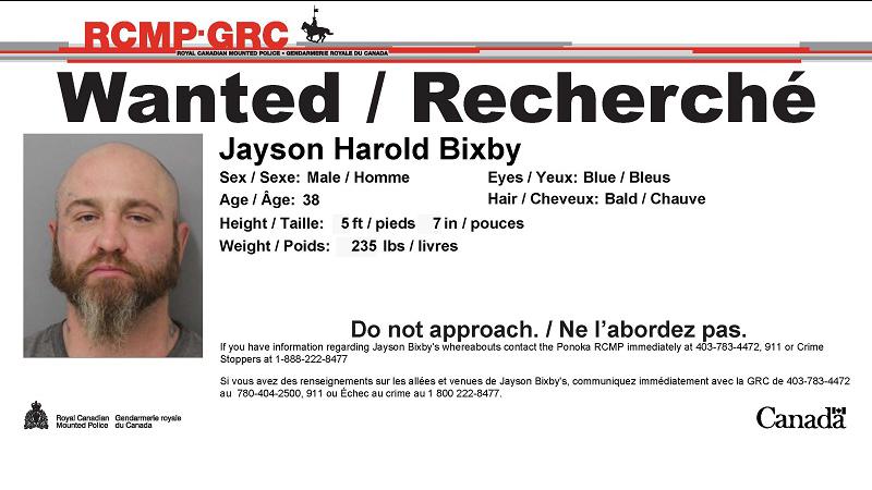 Ponoka RCMP say Jayson Harold Bixby has been arrested safely in Ponoka and is in police custody.
