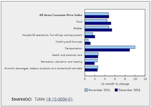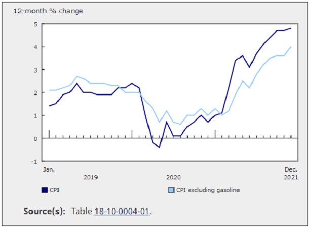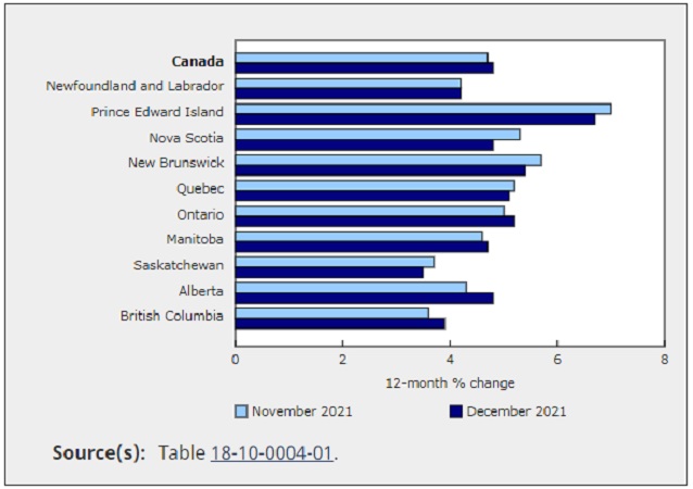 In December 2021, the Consumer Price Index (CPI) rose 4.8 per cent compared to the same period in 2020.