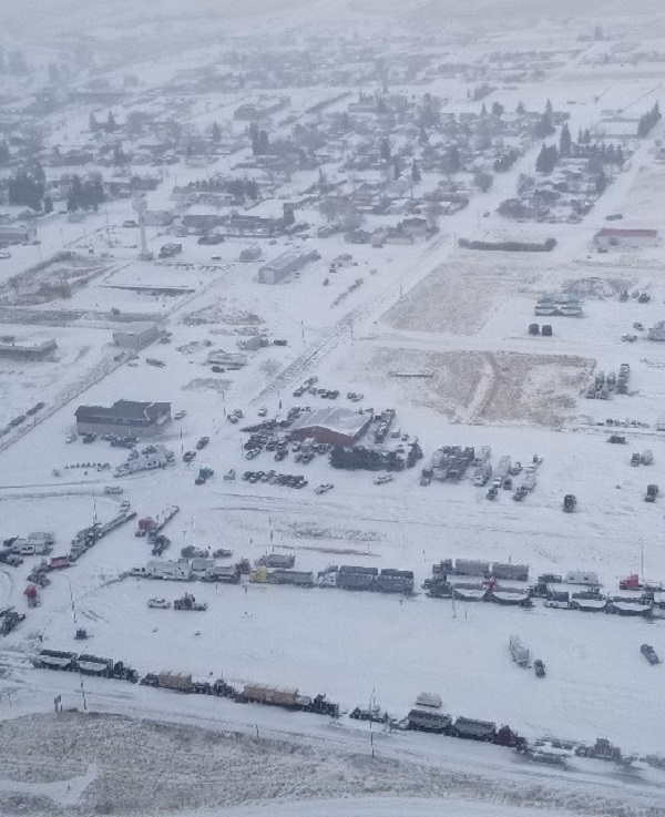 Feb. 1 aerial view of highway at Coutts - RCMP