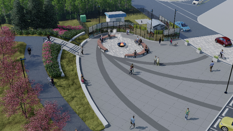 The Border Paving Plaza will be a four-season gathering place that will provide residents and visitors with an aesthetically pleasing open area in which they can participate in markets, festivals, performances, and other community events. The Plaza will be east of the Eagle Builders Centre and south of the existing parking lot.