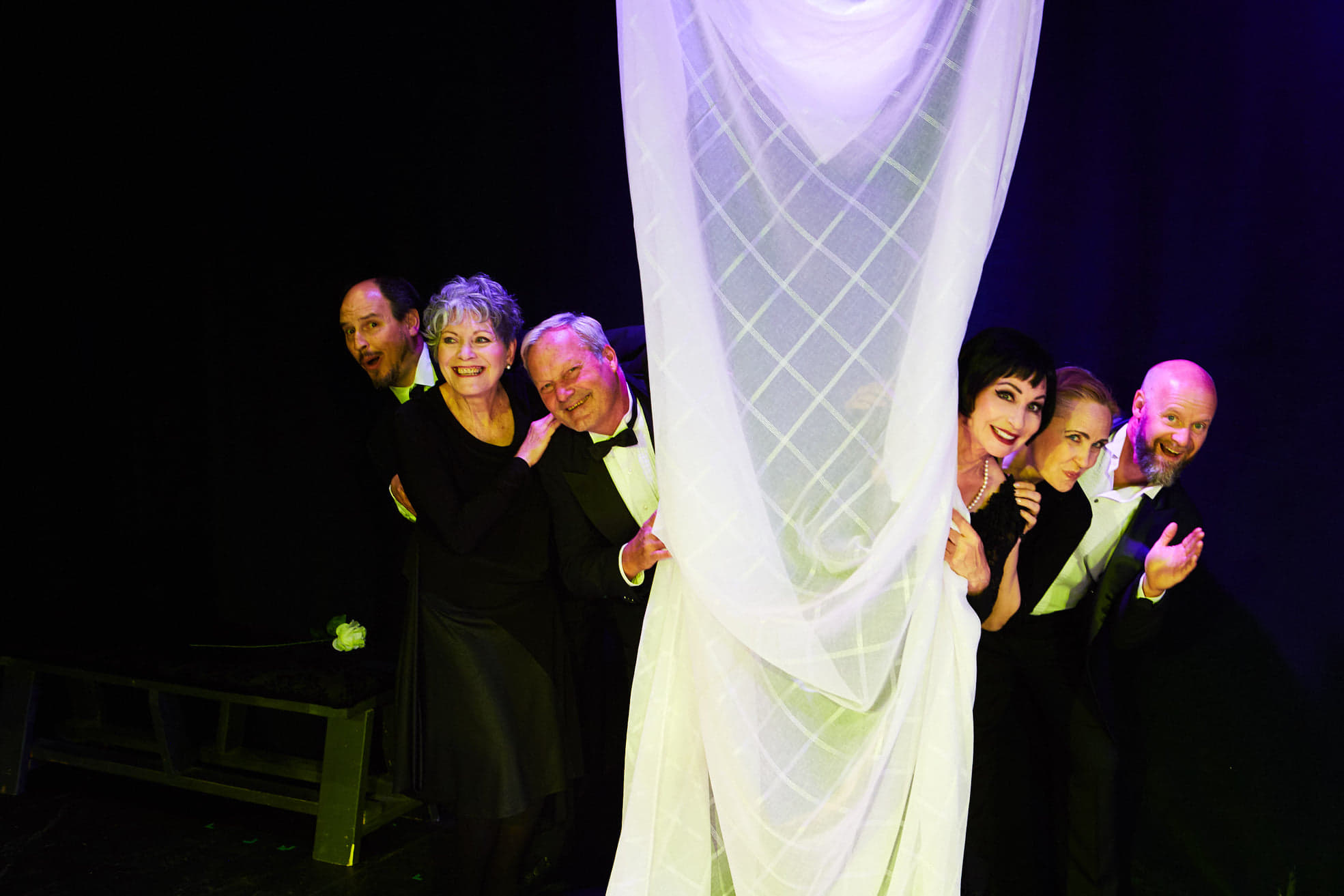 (From left to right) Serge Beliveau, Narrator; Sharon Braun, ensemble; Ron Schuster, Coco’s Father and more; Anna Maria Kaufmann, Coco Chanel; Angela Siemens, ensemble; Cory Michaud, every man and more. (Supplied)