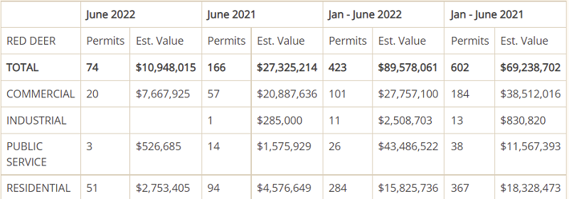 January to June 2022 – 423 permits issued with an estimated value of $89,578,061