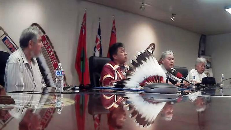 (L-R) Lorne Green, Samson Cree Nation Elder, Chief Vernon Saddleback, Samson Cree Nation, John Crier, Samson Cree Nation Elder, and Flora Northwest, Samson Cree Nation Elder. (Samson Cree Nation)