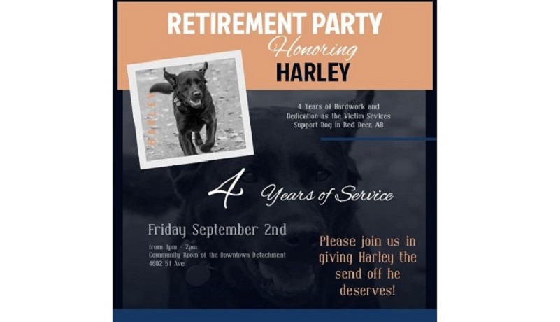 During his service, Mounties say Harley has logged nearly 700 hours, providing support to more than 300 individuals and families affected by crime and tragedy. Harley also regularly provided support at the Red Deer provincial court house and at the Central Alberta Child Advocacy Centre.