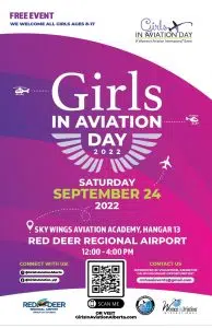 In partnership with Women in Aviation International and the Red Deer Regional Airport, Red Deer’s first Girls In Aviation Day will take place on September 24 from 12:00 p.m.-4:00 p.m. at Sky Wings Aviation Academy.