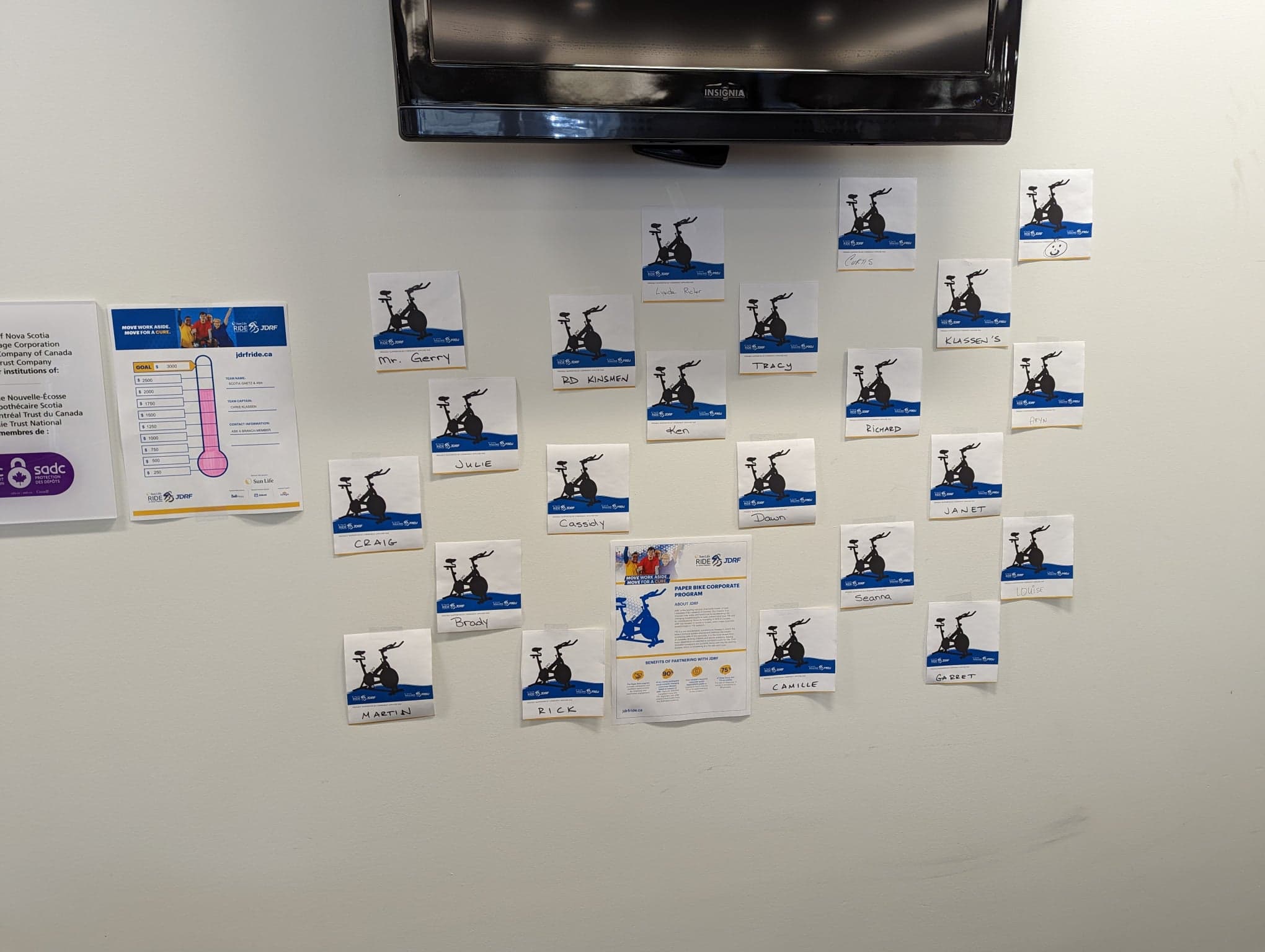 Bike donation wall at the Scotiabank on Red Deer’s Gaetz and 45 St. for the Sun Life Ride to Defeat Diabetes fundraiser. (Supplied)