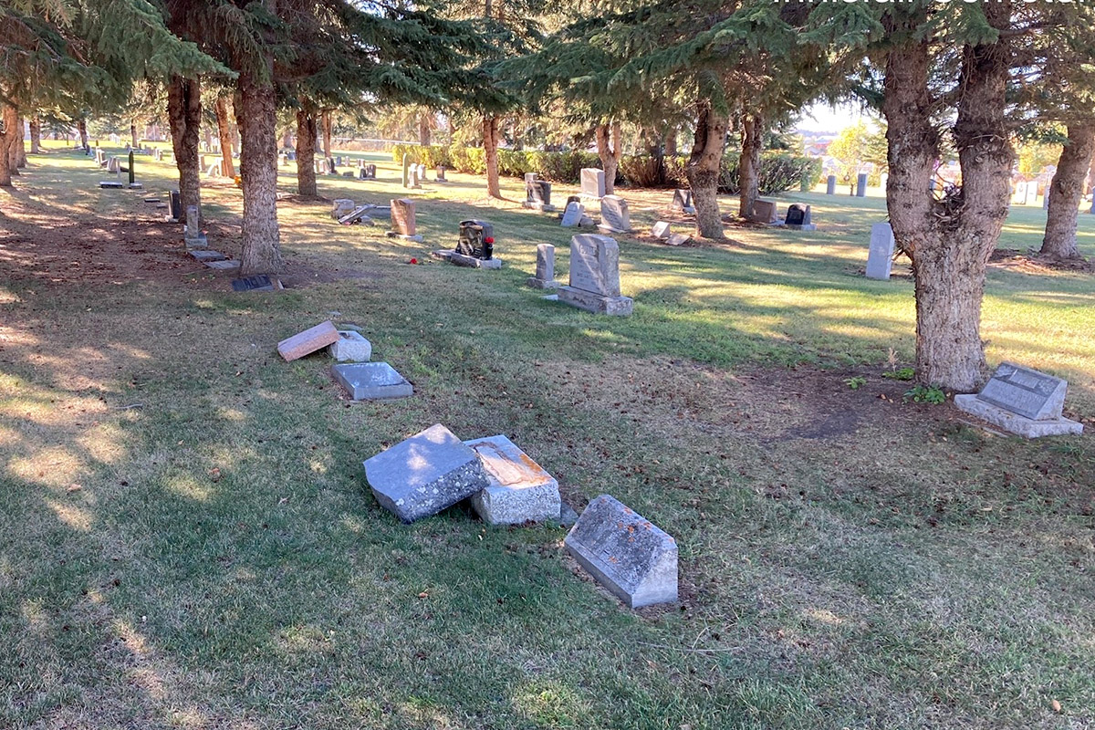On Oct. 13, RCMP received a complaint that about 100 gravestones had been knocked over at the Innisfail Community Cemetery.