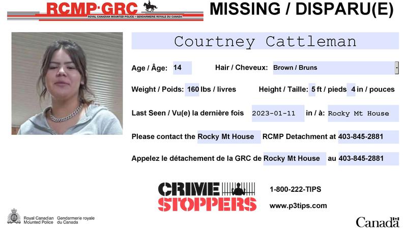 MISSING: Courtney Cattleman, 14, Rocky Mountain House