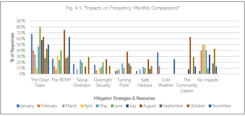 Kristin Walsh, Manager of Safe & Healthy Communities for the City, said feedback has shown the strategies have had an overall positive effect, particularly the Downtown Business Association’s (DBA) Clean Team, RCMP efforts, and overnight security.