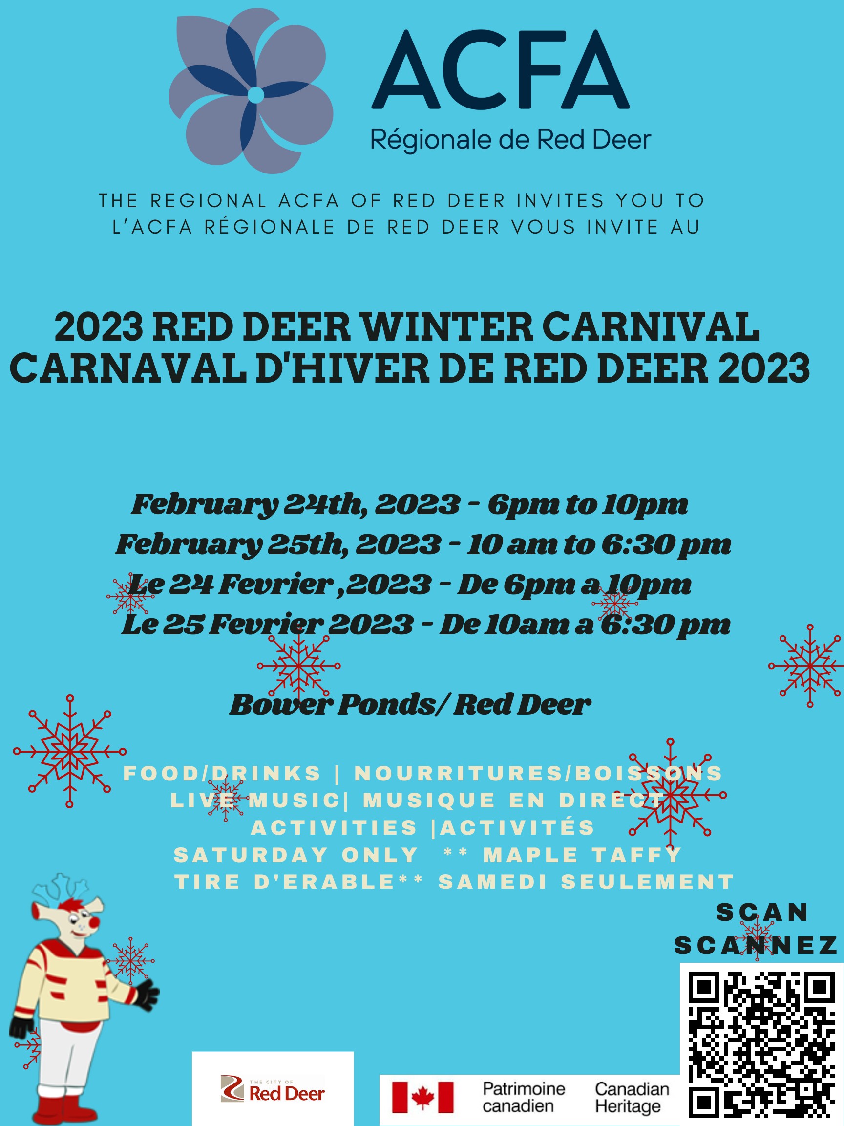 The French-Canadian Association of Alberta (Association canadienne-française de l’Alberta; ACFA) will be hosting their Winter Carnival this weekend in Red Deer.