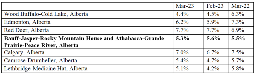 Unemployment in Red Deer is hanging steady at 7.7 per cent as of March.