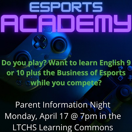 Families can learn more about the new Esports Academy at an open house that will be held on April 17 at 7 p.m. in the Learning Commons at Lindsay Thurber. All families, including those who do not currently attend LTCHS, are invited to attend.