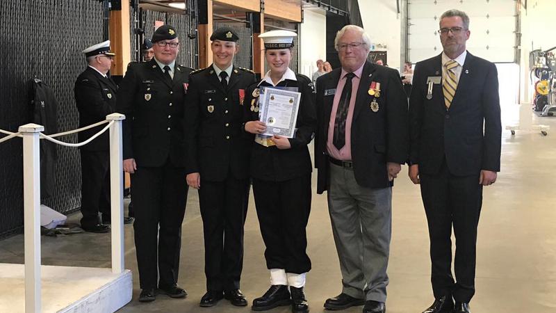 At the Cormack Armoury (4402 55 St) on Thursday, Cadet Hannah Bennett, now ranked Chief Petty Officer Second Class (CPO2), was given the Navy League of Canada Cadet Medal of Excellence.