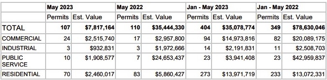 Officials with the City of Red Deer say building permit values decreased in May, with 107 approved permits valued at $7.8 million, compared with 110 permits issued in May 2022 worth $35 million.