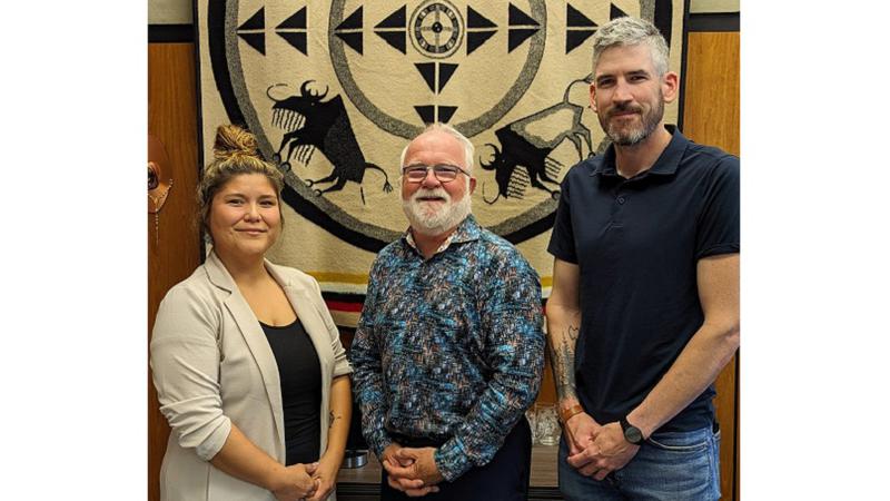Yellowknife city councillors Stacie Arden-Smith (left) and Rob Warburton (right) met with Red Deer Mayor Ken Johnston at Red Deer City Hall on Wednesday, Aug. 23, 2023. (City of Red Deer)