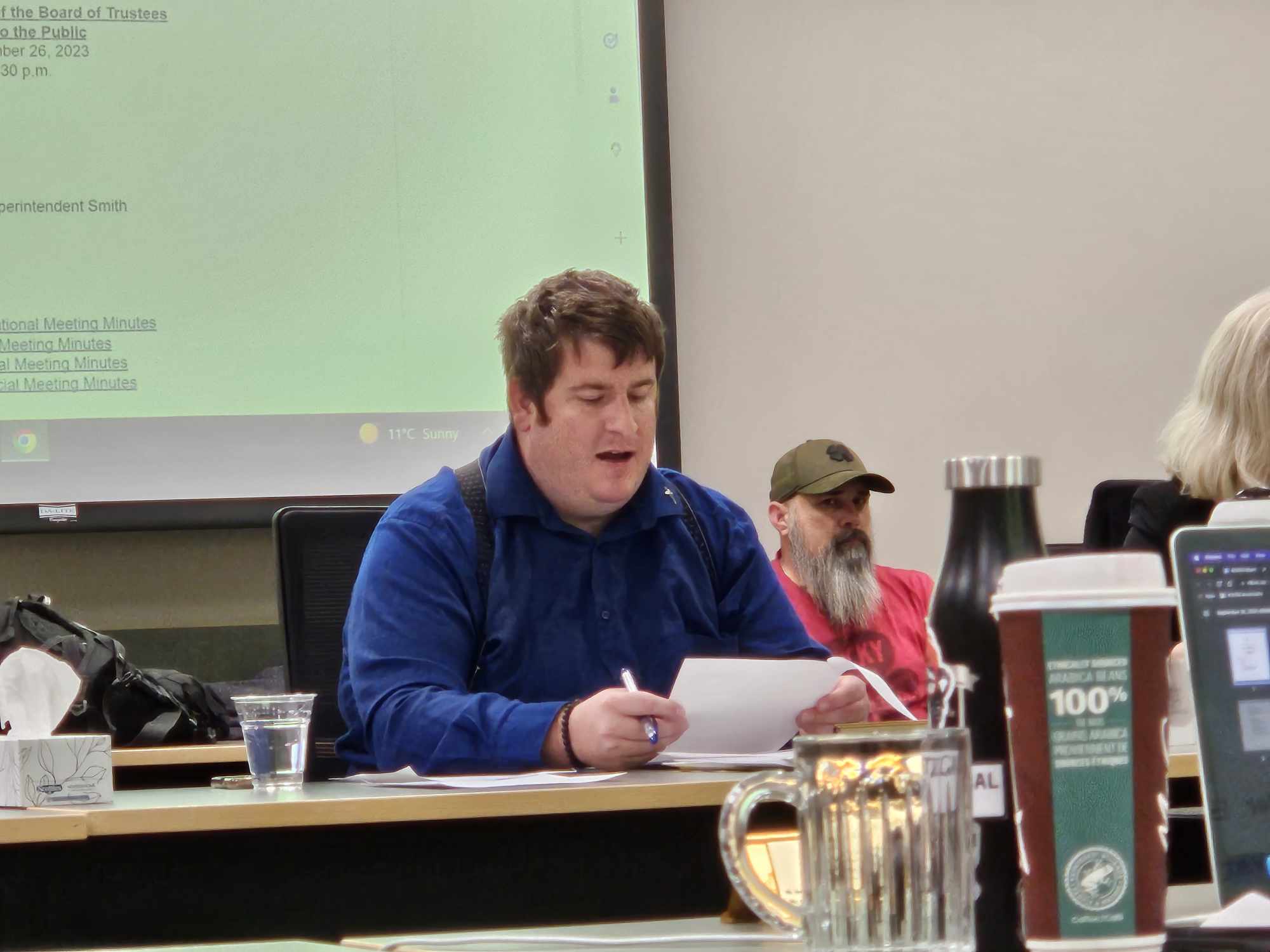 RDCRS Board Chair Murray Hollman reads some opening remarks to start the board’s regular meeting on Sept. 26, 2023. (rdnewsNOW/Josh Hall)