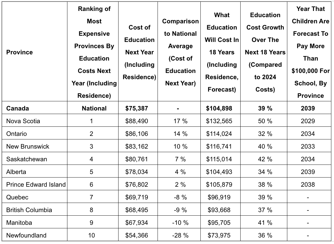 The most expensive province in which to go to school for 2023 was Nova Scotia at $88,490, while students in Newfoundland can expect to pay the least at $54,366.