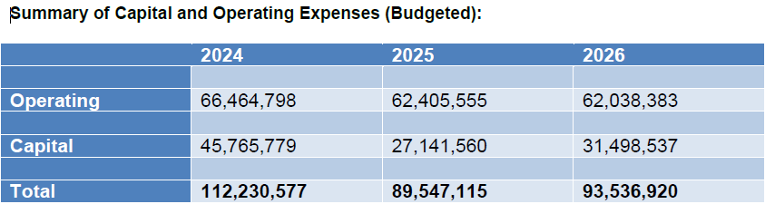 Capital spending in 2024 will increase from last year’s $43.14 million to $45.77 million. The operating budget will also see an increase from $59.4 million to $66.5 million.