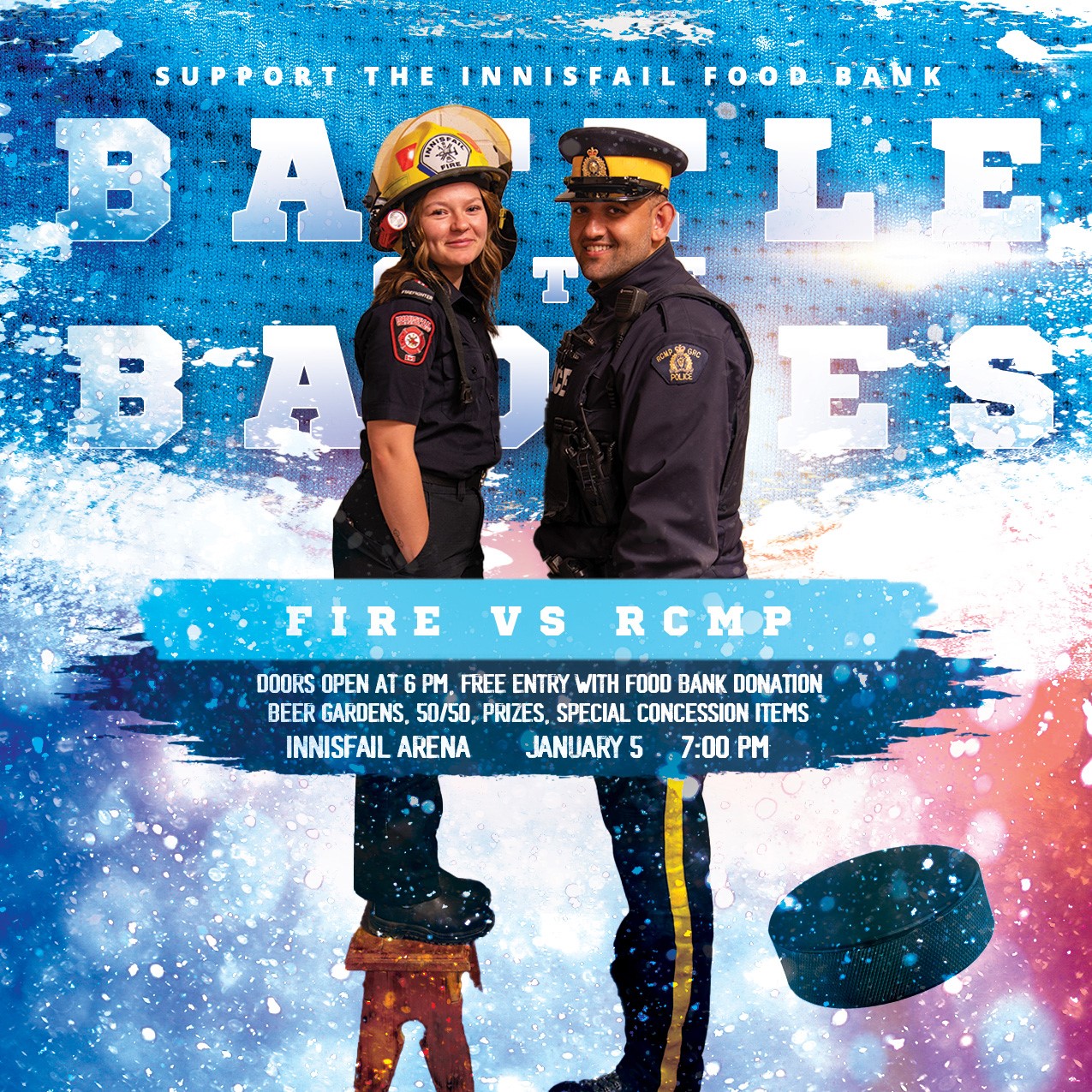 The second annual game will be played this Friday, January 5, 2024 at the Innisfail Twin Arena (5804 42 St.). Doors open at 6 p.m. and puck drops at 7 p.m.