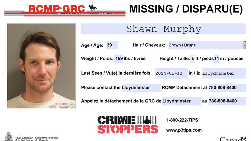Shawn Murphy was last seen in Lloydminster on Jan. 12, 2024 at 5:15 p.m. When last spoken to, Murphy mentioned the possibility of travelling to Red Deer and was driving an early 2010s white Buick four-door sedan, police say.