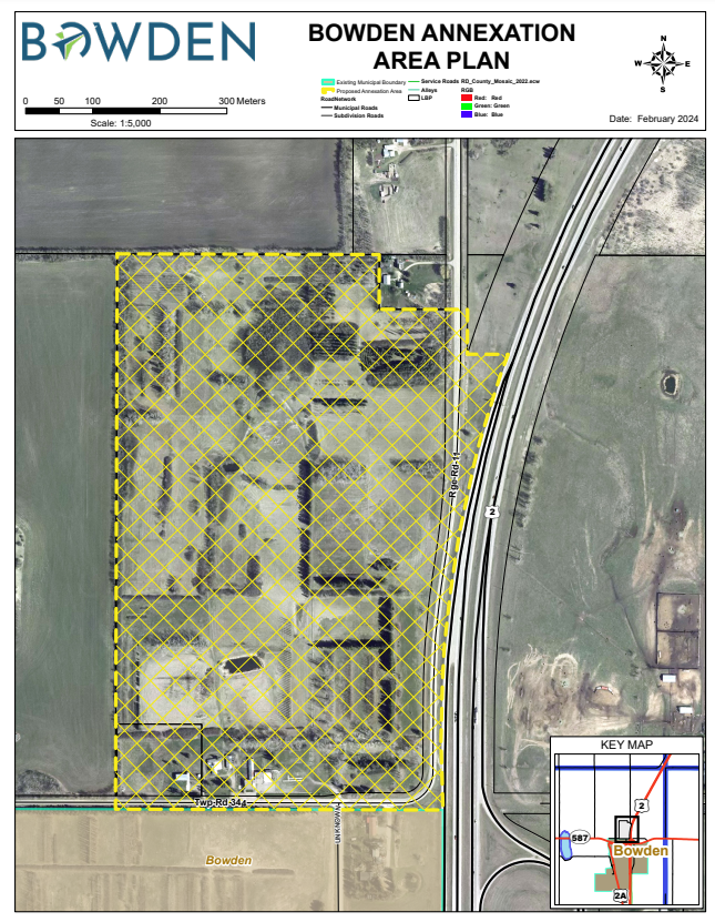 The Town says the land falls within the North Bowden Industrial/ Commercial Area Structure Plan and has been identified for commercial and industrial uses including a storm water management pond, public utility lot and internal roads. They say the annexation would grow their non-residential tax base.