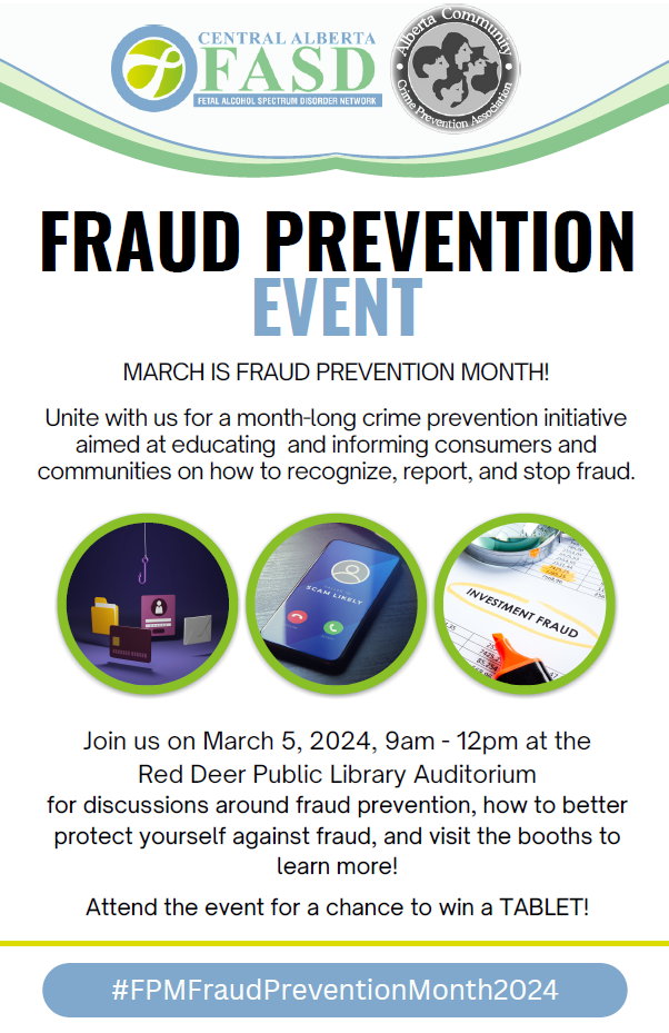 Across Alberta during the month of March, interested police and law enforcement agencies, and community and consumer groups form the Alberta Fraud Prevention Month committee to plan launches and events to spread key messages to the public on how to better protect themselves.