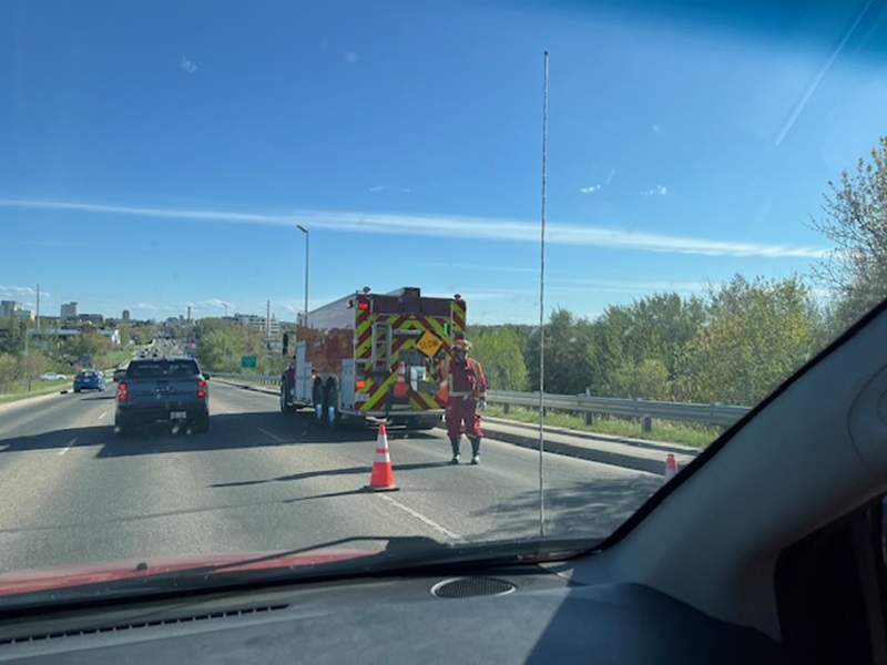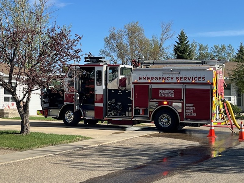 Evan Stewart, assistant deputy chief, Red Deer Emergency Services (RDES), says crews were called to an outside fire in the trees at 4:27 p.m. on May 8, 2025.