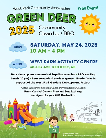 Don’t forget our Bottle Drive fundraiser to help support the West Park Gardens Redevelopment Project – the COSMOS trailer will be parked on 39 Street by the hall between 10am-4pm – either drop off your bottles, or contact us and we can pick them up!