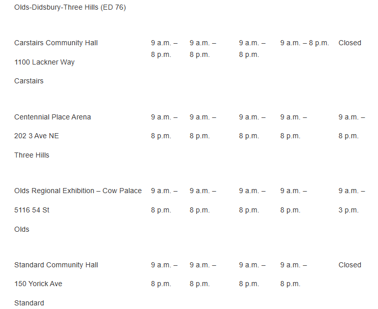 Alberta’s Chief Electoral Officer, Gordon McClure, confirms advance voting locations in Edmonton-Ellerslie, Edmonton-Strathcona, and Olds-Didsbury-Three Hills are now open.