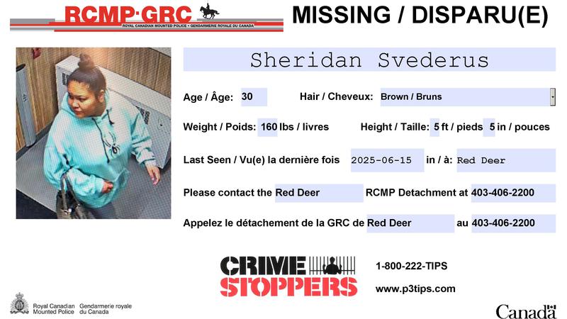The Red Deer RCMP are asking for the public’s help in finding missing 30-year-old Sheridan Svederus.