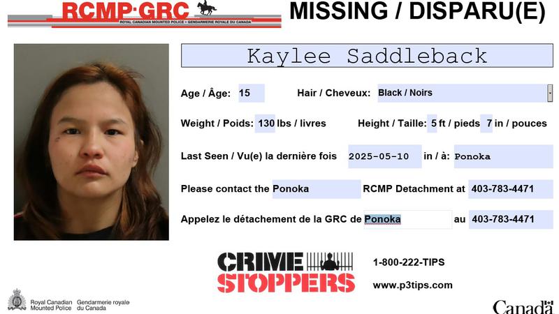 Missing: Kaylee Saddleback, 15, of Ponoka